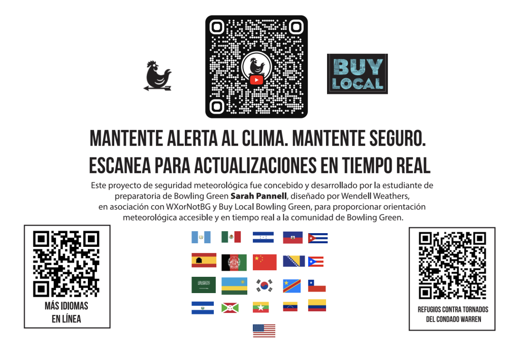 Severe weather can happen quickly in Kentucky. Tornadoes, strong storms, and flooding can affect anyone, no matter where you live. This guide was created to help every member of our community understand how to prepare, stay informed, and act safely when weather becomes dangerous. Please share this information with your family, friends, and neighbors. This project was created by Sarah Pannell, a Bowling Green High School student, who also oversaw its development and pushed it into action for our community, with local weather guidance provided by WxOrNotBG to help keep Bowling Green safer during storm season: